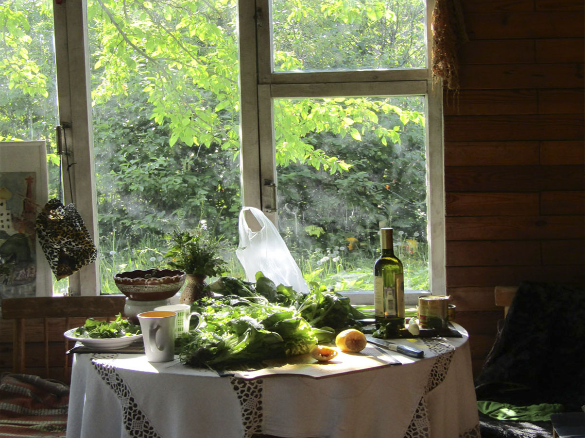 В доме совсем не накопилось пыли за те 11 месяцев, что мы тут не были — и откуда её только в городе берут? Мыши обошли стороной наши крупы и вермишель, чай с кофе за зиму и долгую холодную весну не отсырели, зато водка, в которую бросили горсть последней черёмухи перед отъездом, превратилась в настоящий шедевр. Я первым делом кинулась среди травы искать грядку, на которую в прошлый год было брошено столько сил. Куда там! Даже вход в туалет перегородил гренадерского вида репейник. Того и гляди — попросит визу показать, что имеешь право. Но обкашивать решили аккуратно, огорода в этом году уже не разбить, а настоящая лесная поляна на участке по нам выглядит куда живописнее, чем бритый лужок.