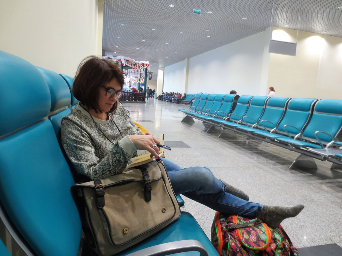 При пересадке на Ульяновск во Внуково впервые увидела самолётик с одной дверью и узко-лопастными пропеллерами, похожими на злые цветы. Загружаться было боязно, вспомнила фильм «Мимино». Поначалу утешала себя тем, что от Хитроу до Эдинбурга однажды добиралась на чём-то подобном. Но обошлось. Взлетели и сели мягко. Оказывается, в Ульяновске два аэропорта. На главном здании «Восточного», где я приземлилась, сообщалось, что Ульяновск — родина Карамзина.