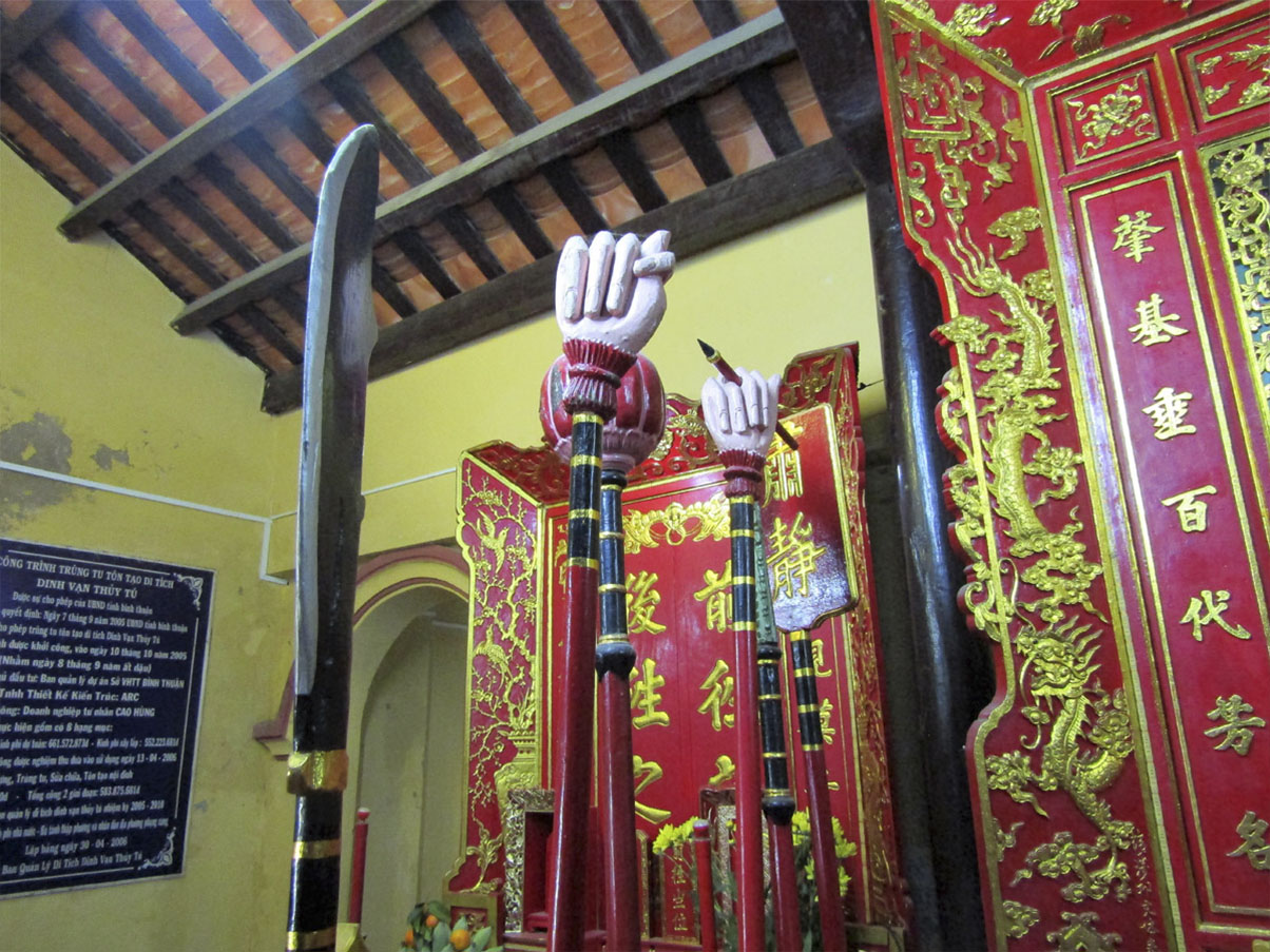 Но я о храме. Добраться до него довольно просто, если двигаться по центральной улице. Впрочем, не заплутай немного Иванов, и не попади мы в настоящие трущобы, финальное ощущение от посещения Ланг Онга (специальное название «китовых храмов», их во Вьетнаме 4), было бы несколько другим. А так мы в полной мере насладились общением с прямыми потомками тех людей, которые в 1767 году выстроили святилище для исполинского животного весом в 65 тонн. Здесь хранится его скелет длиной 22 метра, а точнее святые мощи. Потому что Кит — Бог моря (Тханг Там или Намхай), покровитель и заступник всего народа, от моря живущего. Здесь есть его алтарь с очеловеченным изображением, куда приносят подношения и где молятся о богатом улове. Есть костница, где хранят останки других погибших китов.