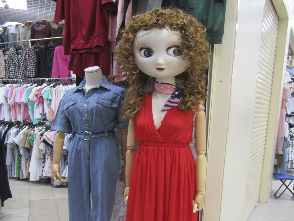 И потихоньку прозреваешь, почему запрещено снимать в павильонах «Пекин» и «Ханой», в отсеках-бутиках которых и без того непростая жизнь пришельцев из других цивилизаций отягощена жизнью манекенов. Угнетённое пластмассовое племя, обнаженка как часть профессии, расчленёнка, крюки, верёвки, перемещение в контейнерах и крепко перетянутых баулах. Не отпускает мысль, что существование манекенов должно влиять на жизнь своих хозяев или тех, кто коротает с ними день за днём в тесных клетушках торговых центров. Так же, как желтая листва на деревьях сообщает воздуху вокруг тень золотого свеченья и бла-бла-бла.