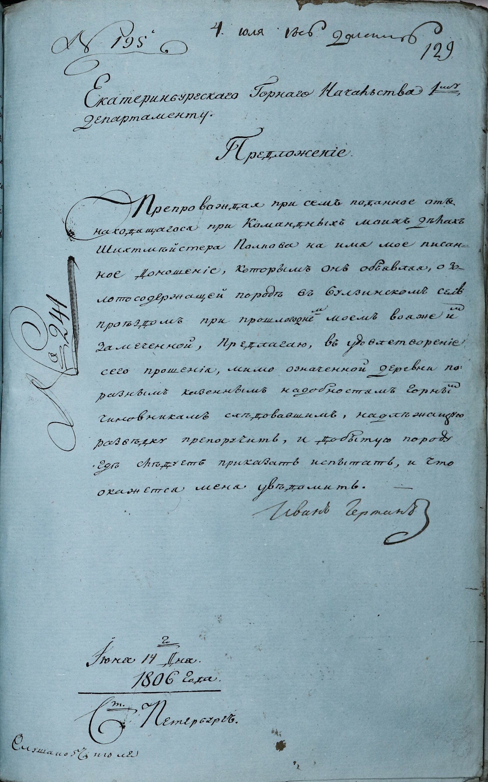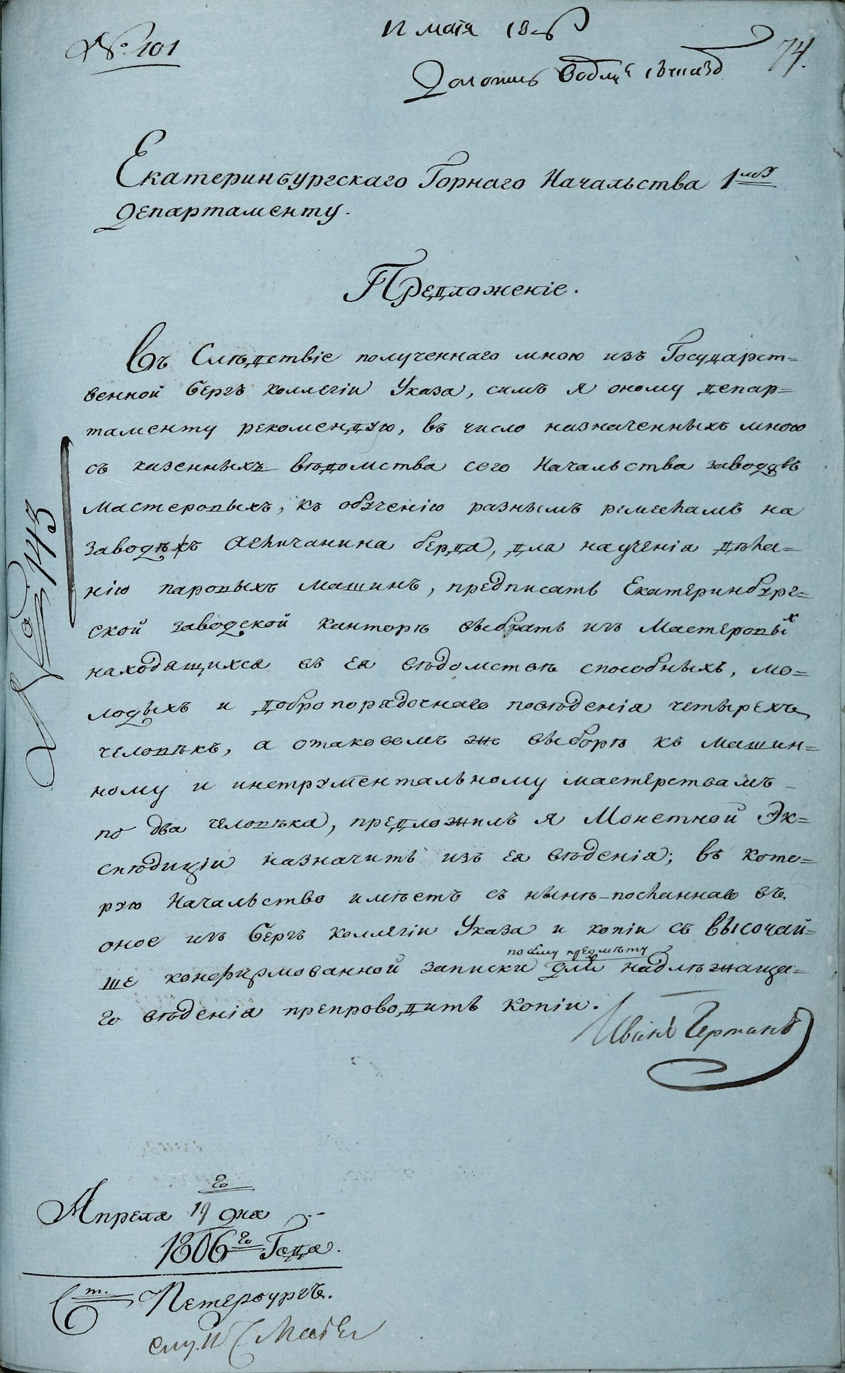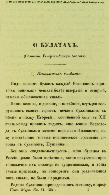 Из книги: Пешкин И. С. Аносов. Челябинск. 1987.