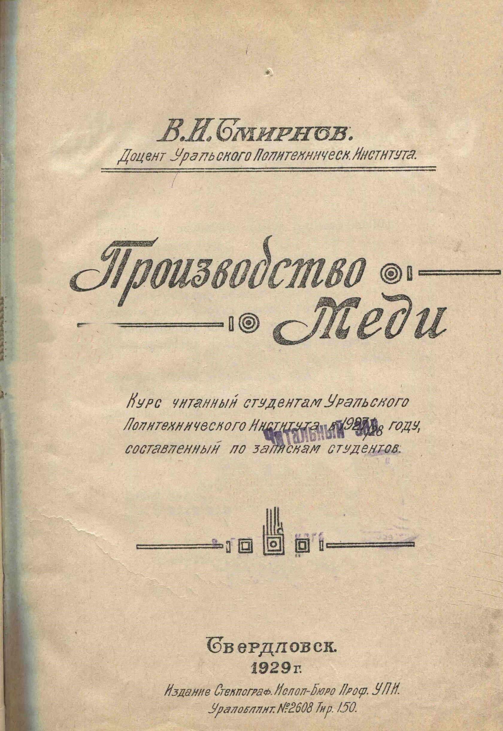 Из статьи: Набойченко С.С. Наука о цветных металлах Василия Смирнова // Уральский рынок металлов. — 2008. — № 3.
