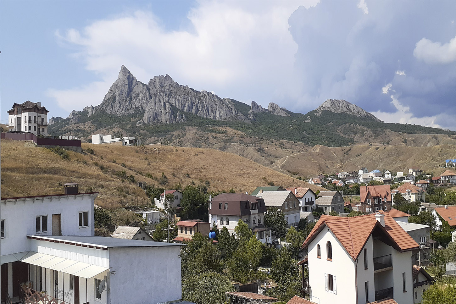 Карадаг (Черная гора) — единственный в Крыму настоящий вулкан, на котором видны следы лавовых потоков, остатки вулканического пепла, жилы глубинных горных пород, обнажившиеся в результате извержения. Склоны горы образуют у моря отвесные обрывы, ущелья, глубокие колодцы. Здесь нет растительности, только отдельные деревца как-то цепляются корнями за голые, выжженные солнцем откосы. Карадагские ворота темной тенью выделяются на светлой глади моря, а чтобы попасть к ним, надо пройти Чертов камень, Чертов палец, скалу Шайтан. Легенда четко запечатлелась в местных преданиях.