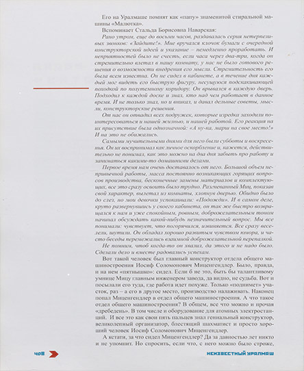 «Компактная, легкая, надежная, доступная» — так обычно отзывались советские женщины о стиральной машине «Малютка», созданной в начале 1970-х на Уралмашзаводе. В те годы перед конструкторским коллективом завода была поставлена сложная задача: сделать максимально легкую стиральную машину, не больше 10 кг, при этом не тратить время на разработку специального мини-мотора, а поставить на «Малютку» двигатель того же класса, что и у больших стиральных машин — «Волжанки», «Вятки». Задача на первый взгляд выглядела невыполнимой, однако коллектив отдела общего машиностроения во главе с Иосифом Соломоновичем Миценгендлером справился с ней блестяще. Сотрудники завода вспоминают, как «после работы конструкторы «Малютки» бежали в магазины, чтобы узнать, как расходится их детище.